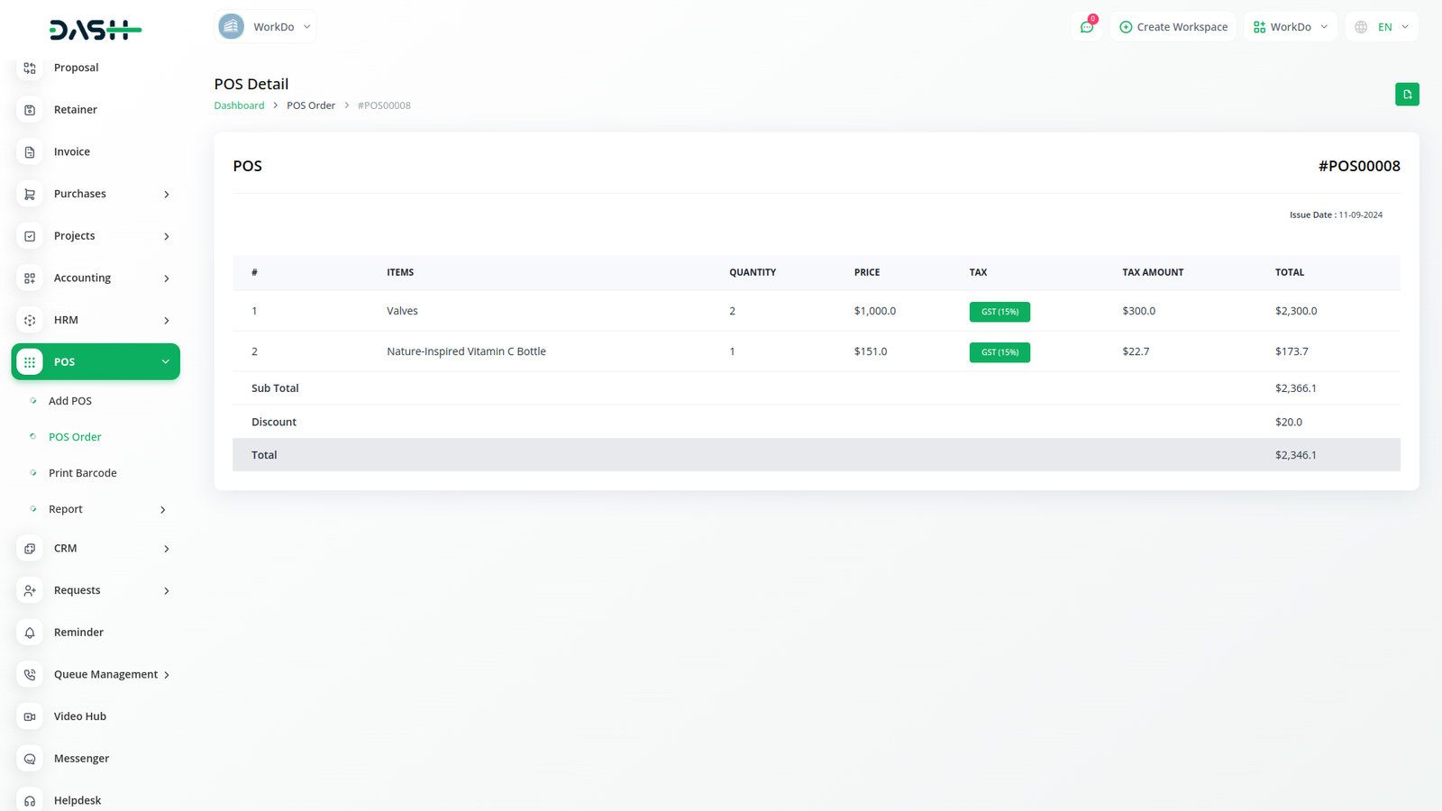 Welcome to the POS Module in Dash SaaS, your ultimate solution for streamlined sales management. Our platform offers a user-friendly dashboard where you can easily navigate through your sales activities. At the heart of the dashboard is a dynamic chart representing your sales reports, providing valuable insights into your business is performance. Whether you are a small retail store or a bustling restaurant, our POS Module empowers you to efficiently manage your sales process from start to finish.
